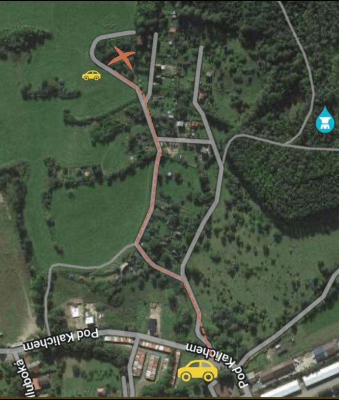 Můžete k nám dojet přímo autem a zaparkovat na louce. Anebo zaparkovat dole u garáží a dojít pěšky.