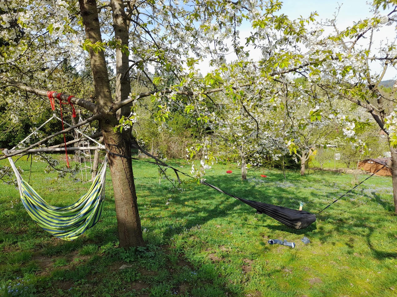 Kde to je možné, máme rozvěšené hamaky. Děti se mohou těšit i na slackliny.