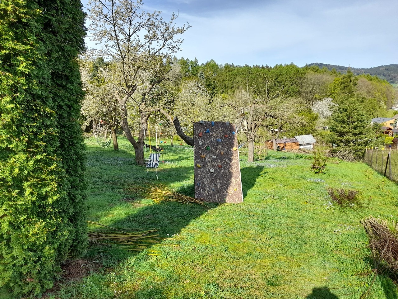 Malá lezecká stěna není jediným místem, kde děti mohou lézt. K dispozici mají všechny stromy, které je unesou.
